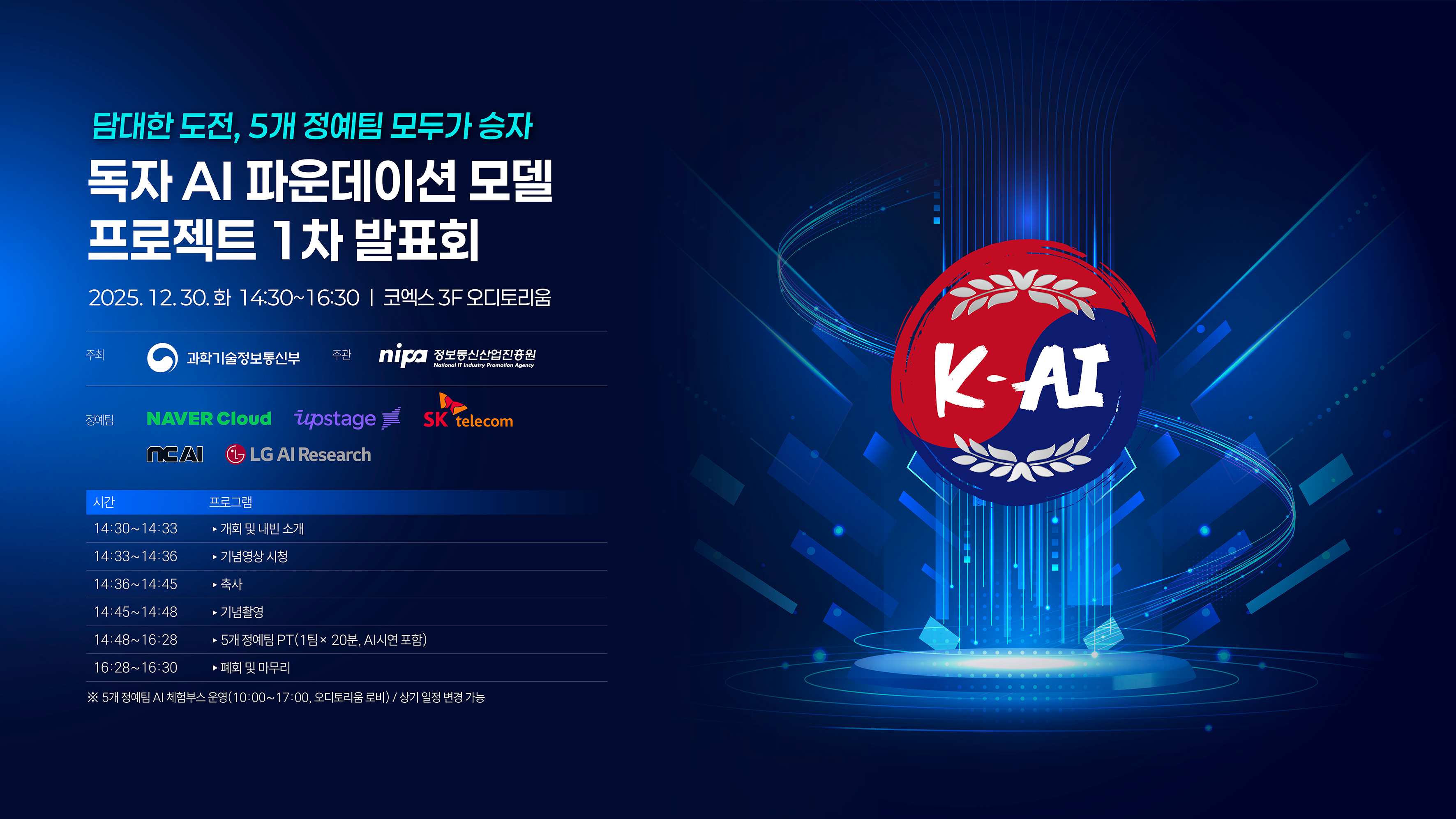본 행사는 국내 기술 기반으로 개발 중인 5개 정예팀의 AI 모델 성과를 처음 공개하는 자리로,