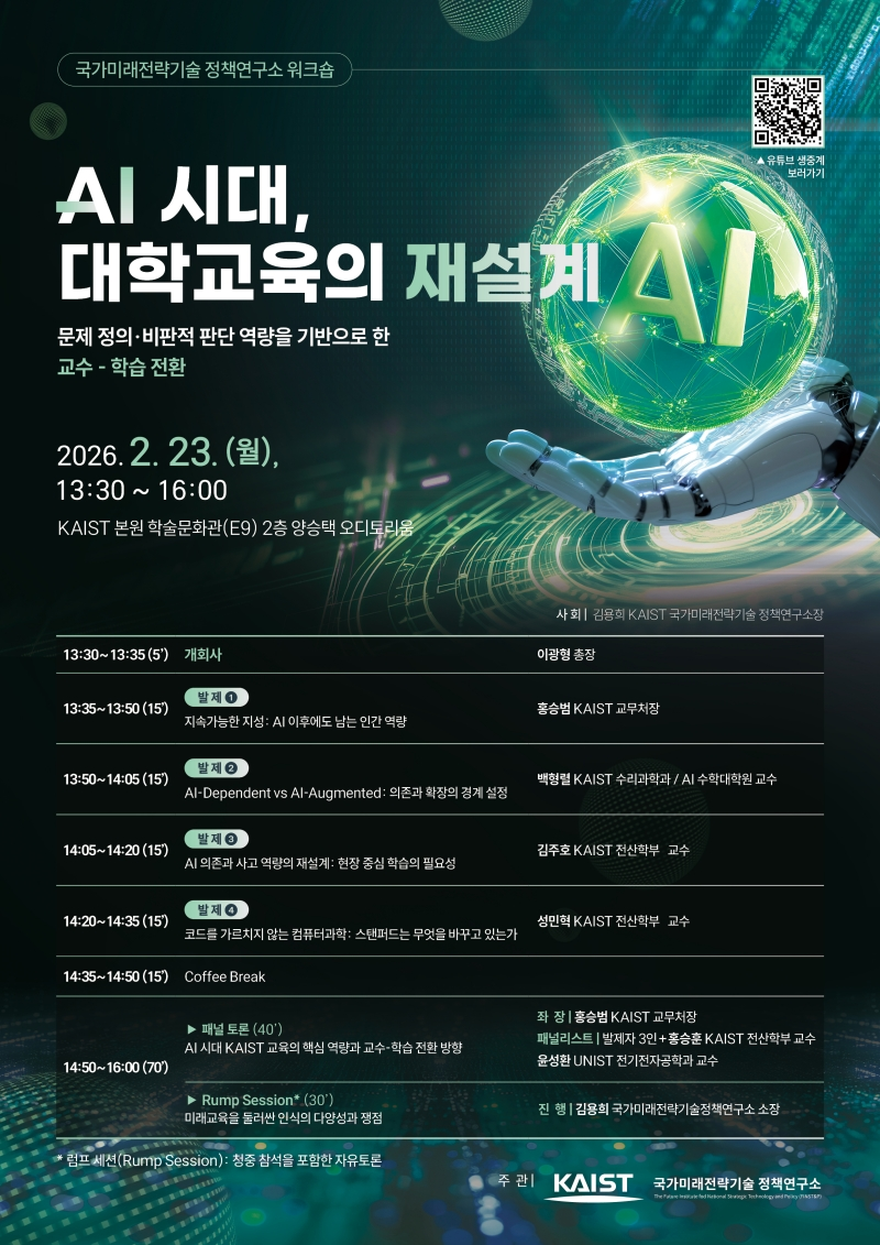 [KAIST] 국가미래전략기술 정책연구소 워크숍 : AI 시대, 대학교육의 재설계(2.23)
