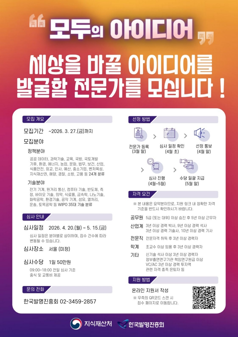 [한국발명진흥회] 모두의 아이디어 심사위원 모집(~3.27)