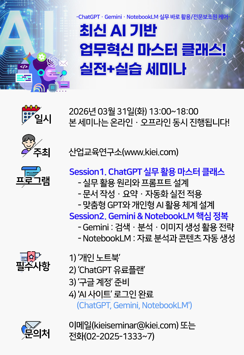 [산업교육연구소] AI 마스터 클래스 세미나 개최 안내