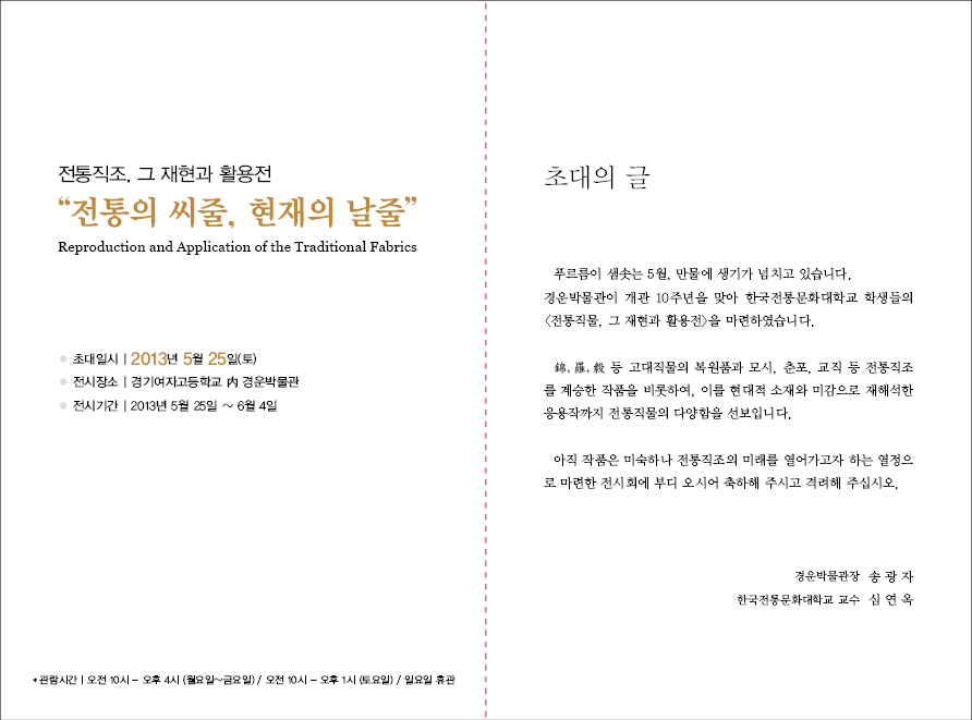 한국전통문화대학교 학생들의 '전통직물, 그 재현과 활용전'을 마련하였습니다.