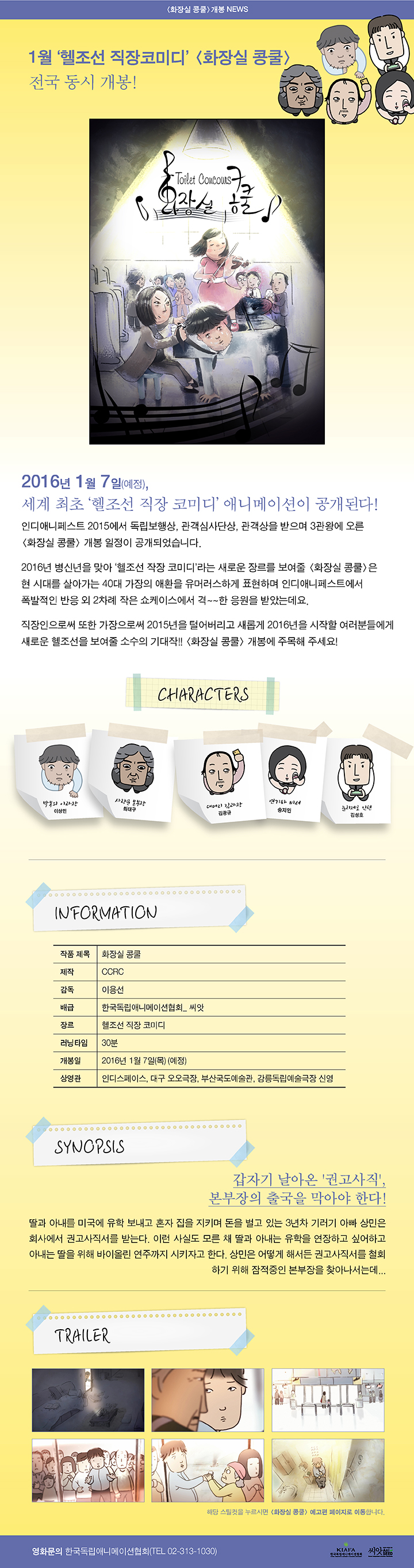 직장인들의 애환을 다룬 애니메이션 <화장실 콩쿨>이 1월 7일 개봉합니다.