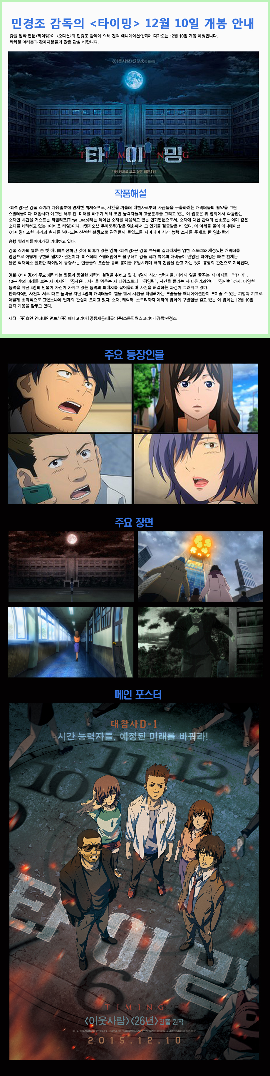 민경조 감독의 <타이밍> 12월 10일 개봉 안내
