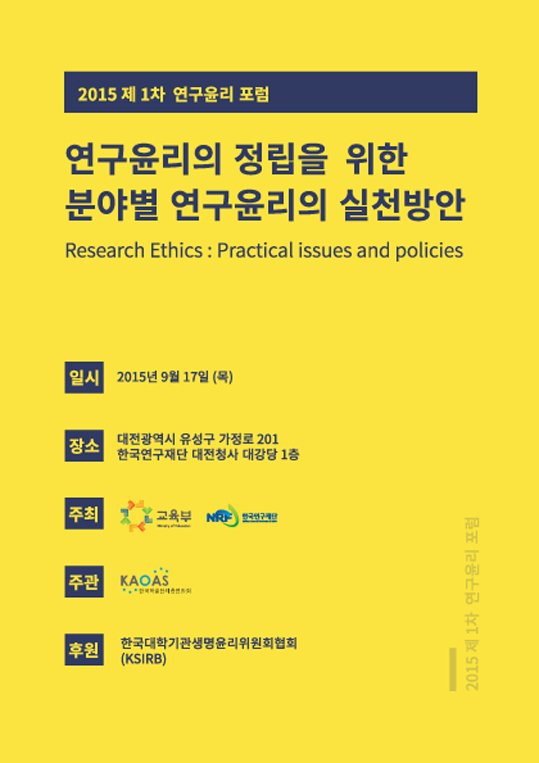 주 제 : 연구윤리의 정립을 위한 분야별 연구윤리의 실천 방안