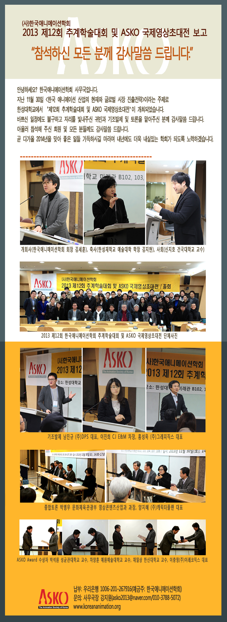 2013 제12회 한국애니메이션학회 추계학술대회 및 ASKO 국제영상초대전 개최 보고