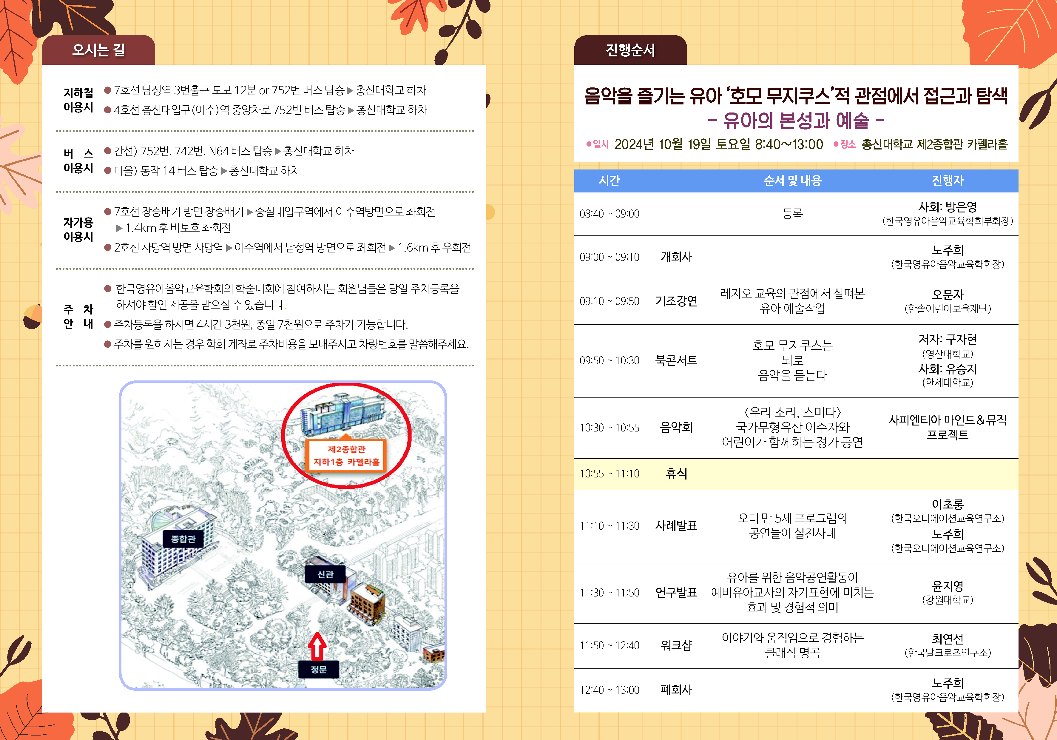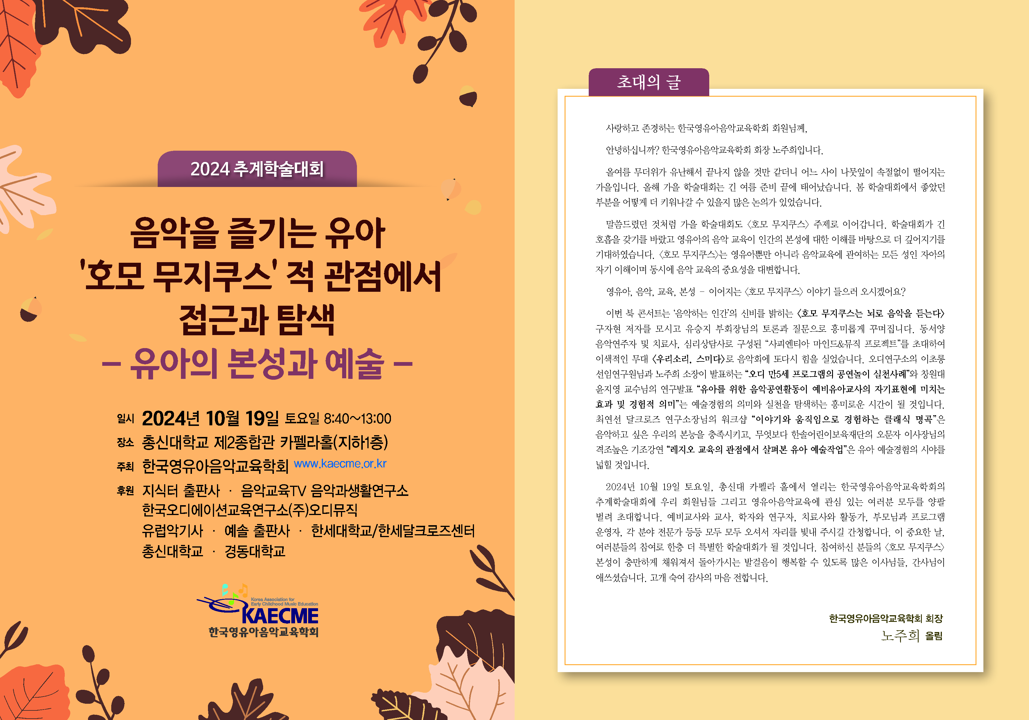 이번 학술대회 주제는 <음악을 즐기는 유아 ‘호모무지쿠스’적 관점에서 접근과 탐색 - 유아의 본성과 예술>입니다.