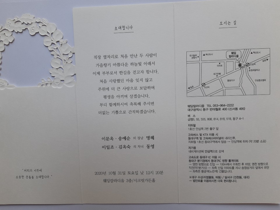 청첩장을 첨부하오니 참고하시기 바랍니다.