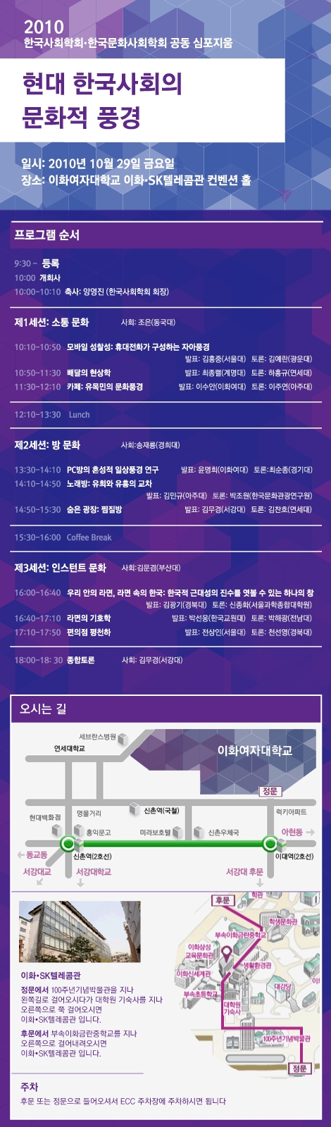 2010 한국사회학회.한국문화사회학회 공동 심포지움 초대장 (2010. 10. 29)