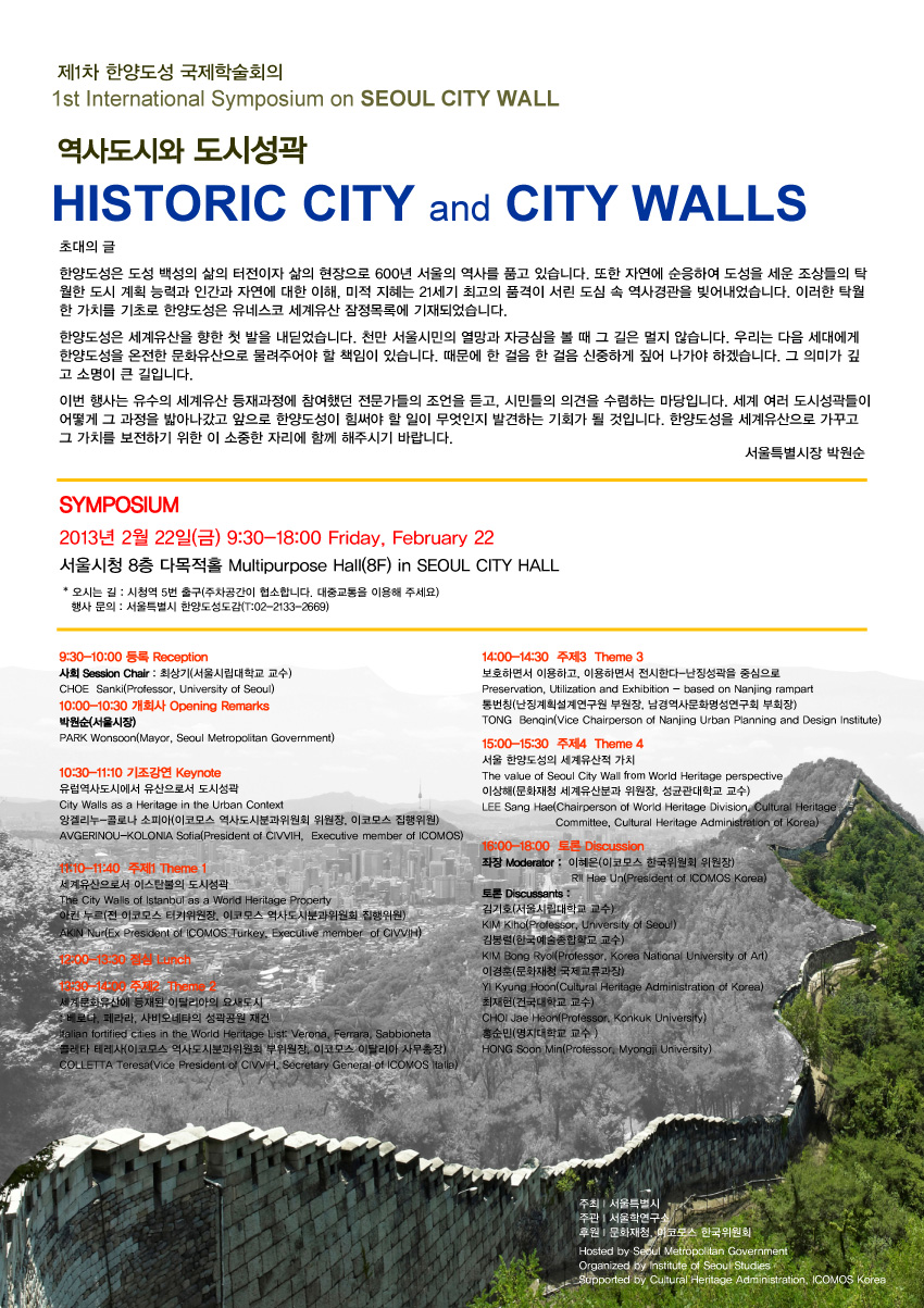 서울특별시 주최 제1차 한양도성 국제학술대회 안내