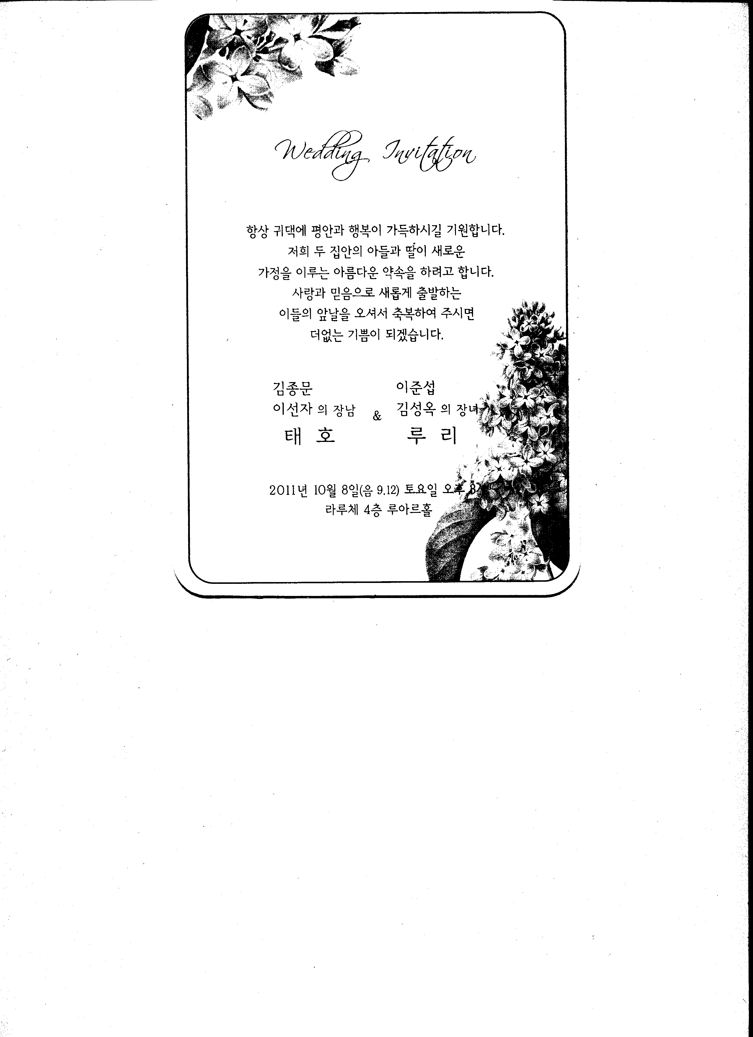 첨부화일에 청첩장이 있으니 참고 바랍니다.