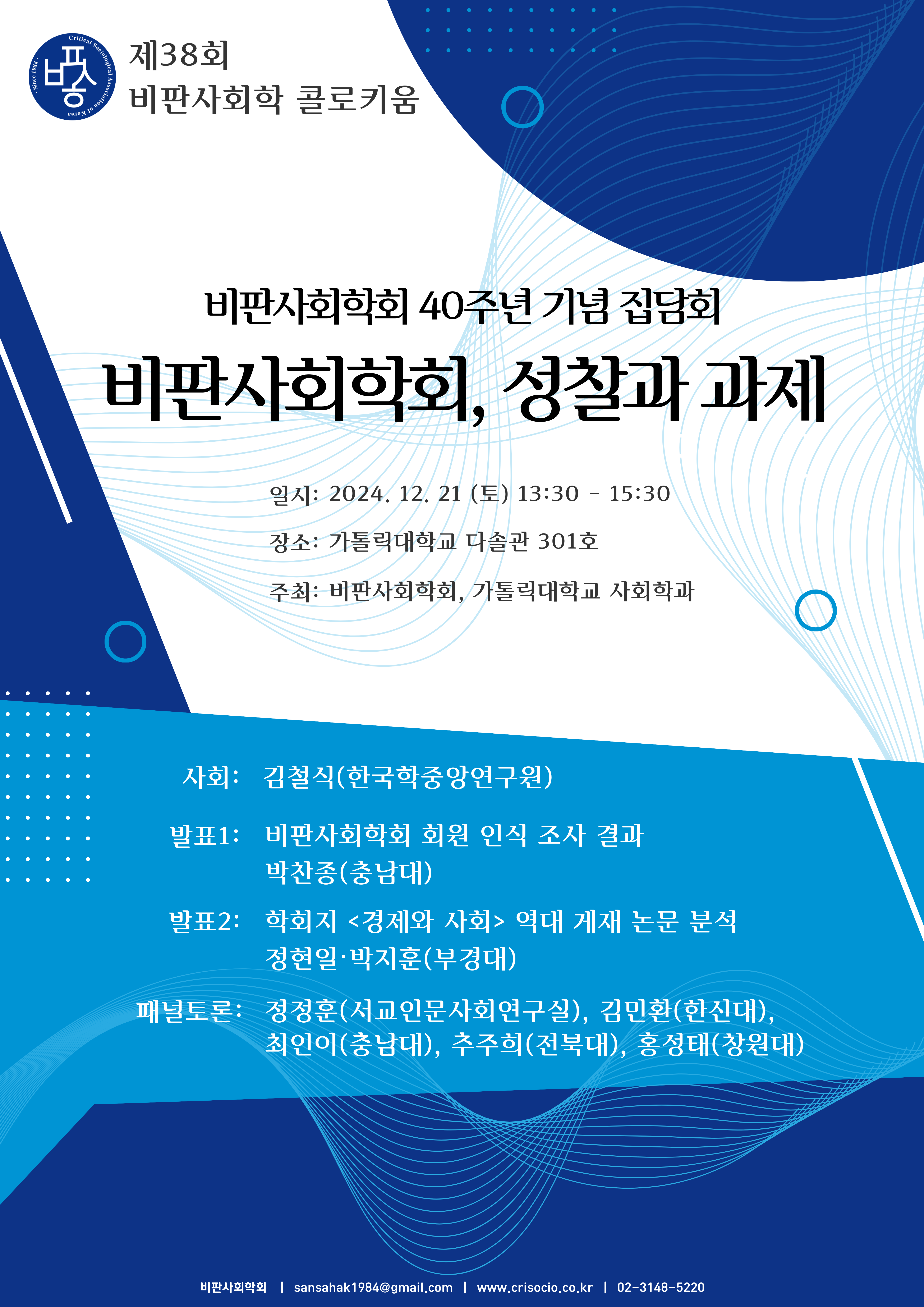 [비판사회학회] 제38회 비판사회학 콜로키움 <비판사회학회 40주년 기념 집담회: 비판사회학회, 성찰과 과제> 12월 21일(토)