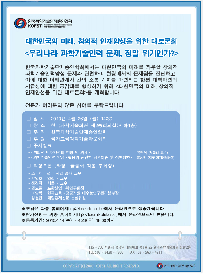 대한민국의 미래, 창의적 인재양성을 위한 대토론회