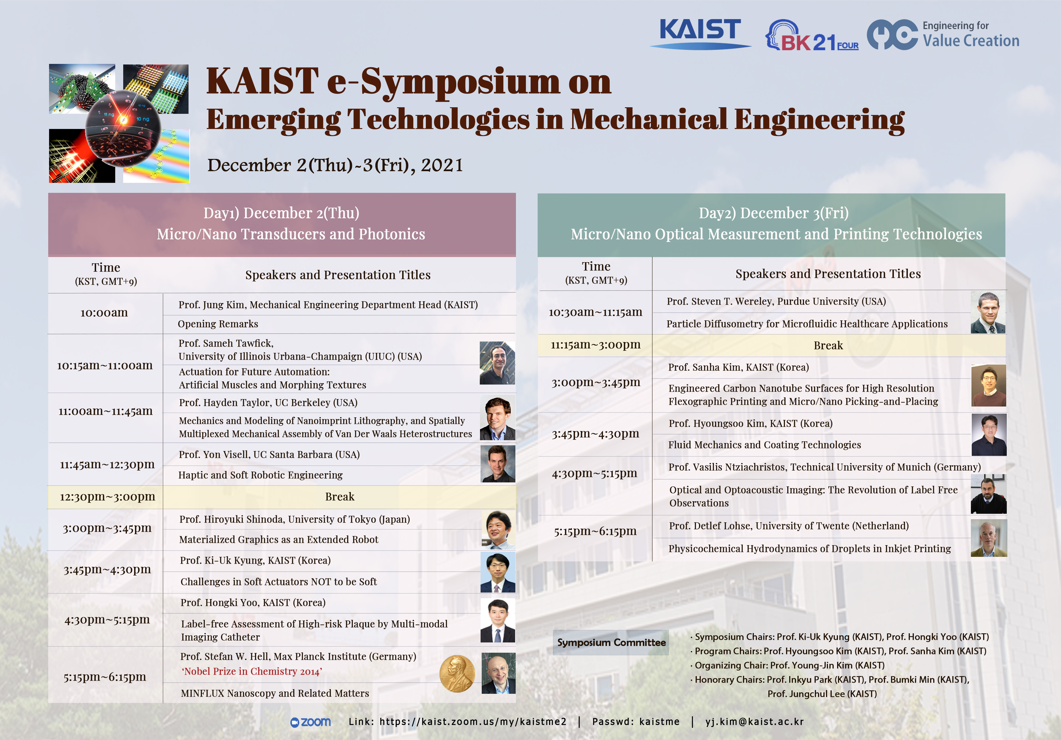 BK21 KAIST 기계항공 교육연구단의 후원으로, 제2회 KAIST e-Symposium on Emerging Technologies in Mechanical Engineering 온라인 심포지엄을 개최합니다.