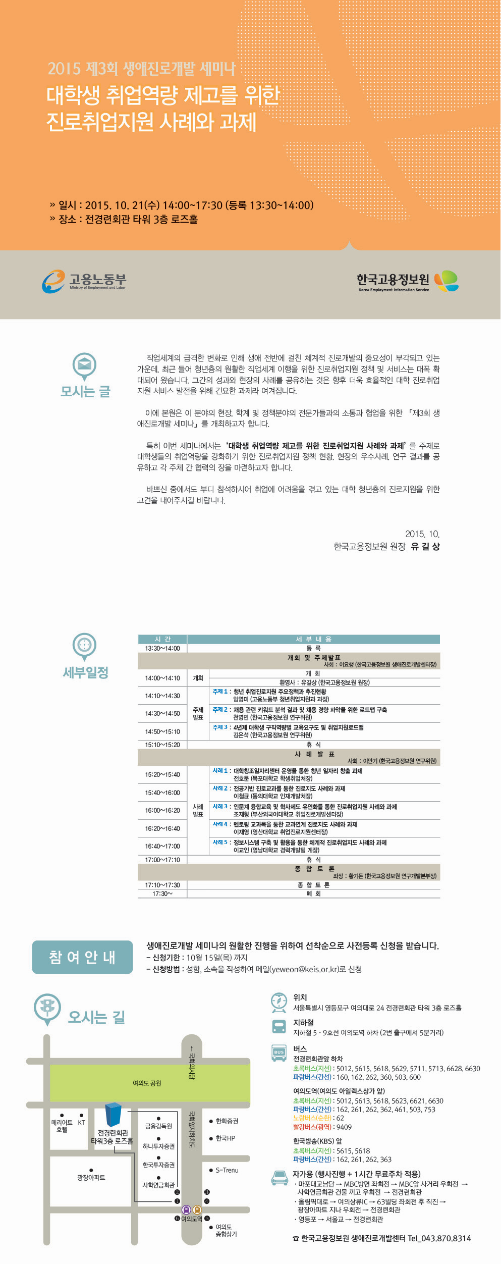 [한국고용정보원 생애진로개발센터] 2015 생애진로개발세미나가 개최됨을 알려드립니다.