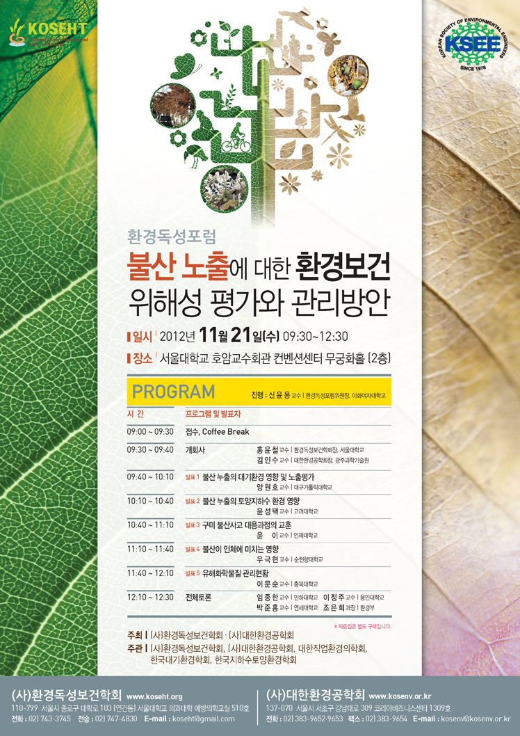 2012 환경독성보건학회 환경독성포럼 일정 및 프로그램 안내