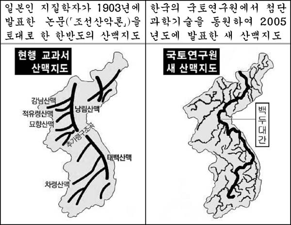 일본 지질학자가 의도적으로 동강낸 한반도의 산맥지도 개탄