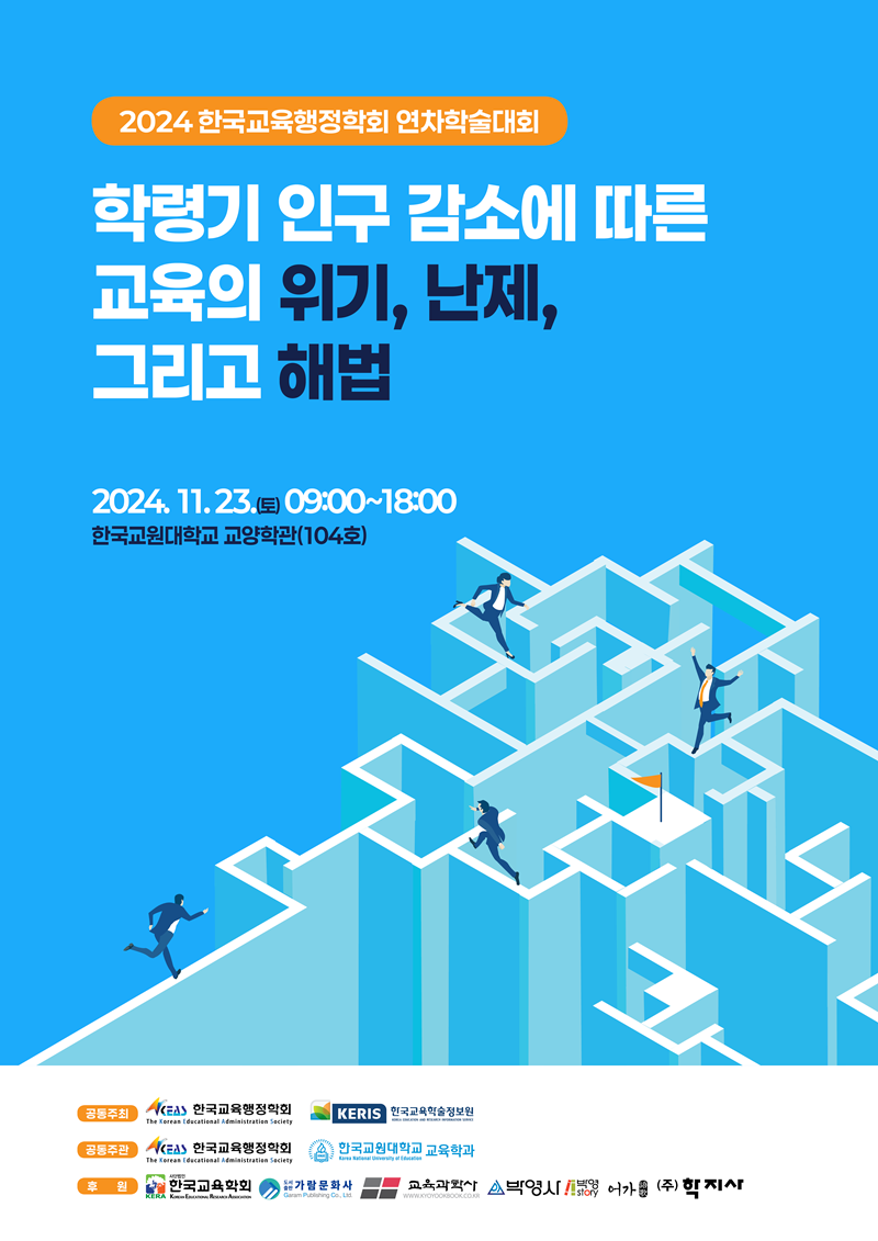 2024년 연차학술대회가 「학령기 인구 감소에 따른 교육의 위기, 난제, 그리고 해법」을 주제로 2024년 11월 23일(토)에 개최될 예정입니다.