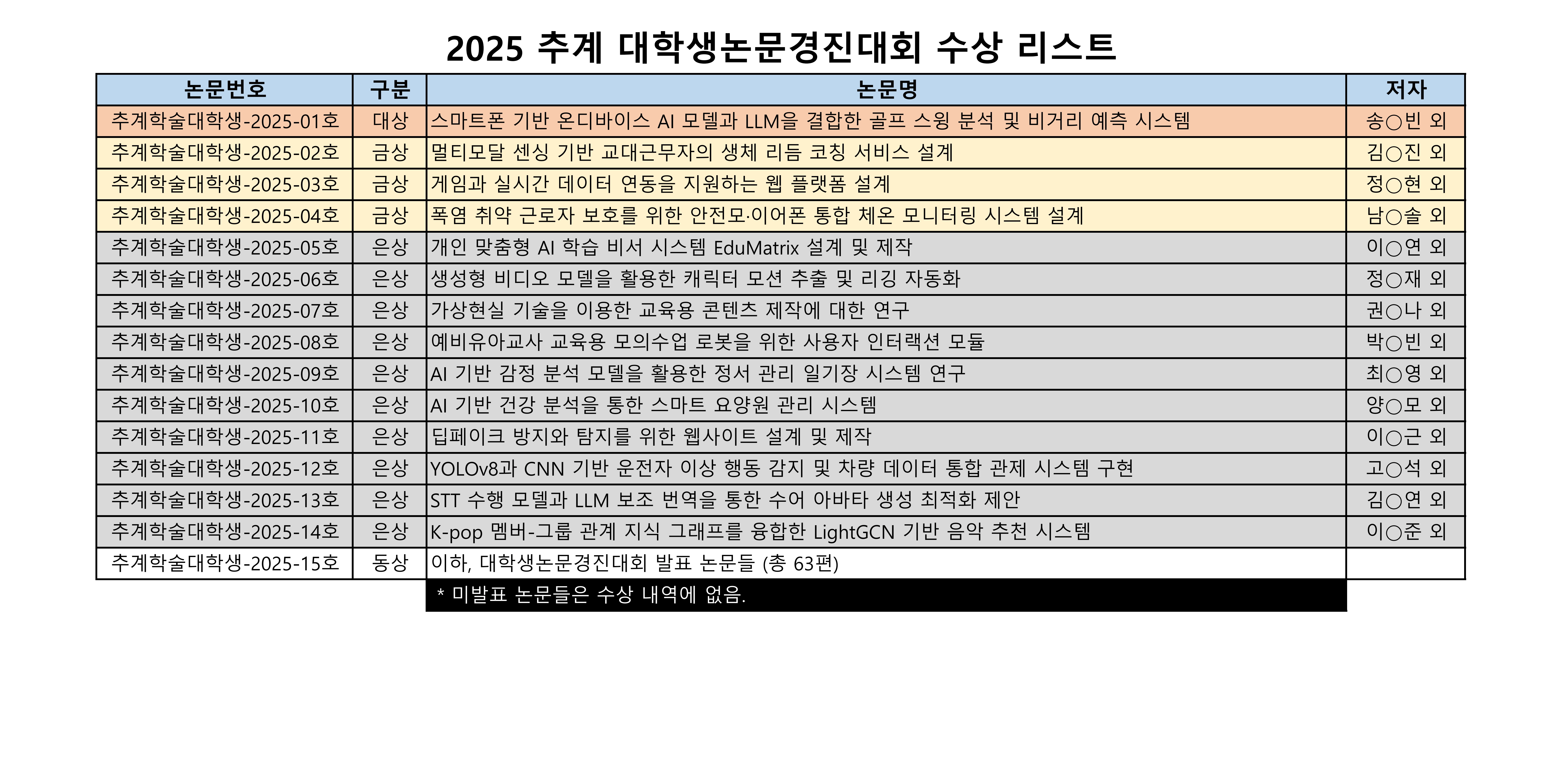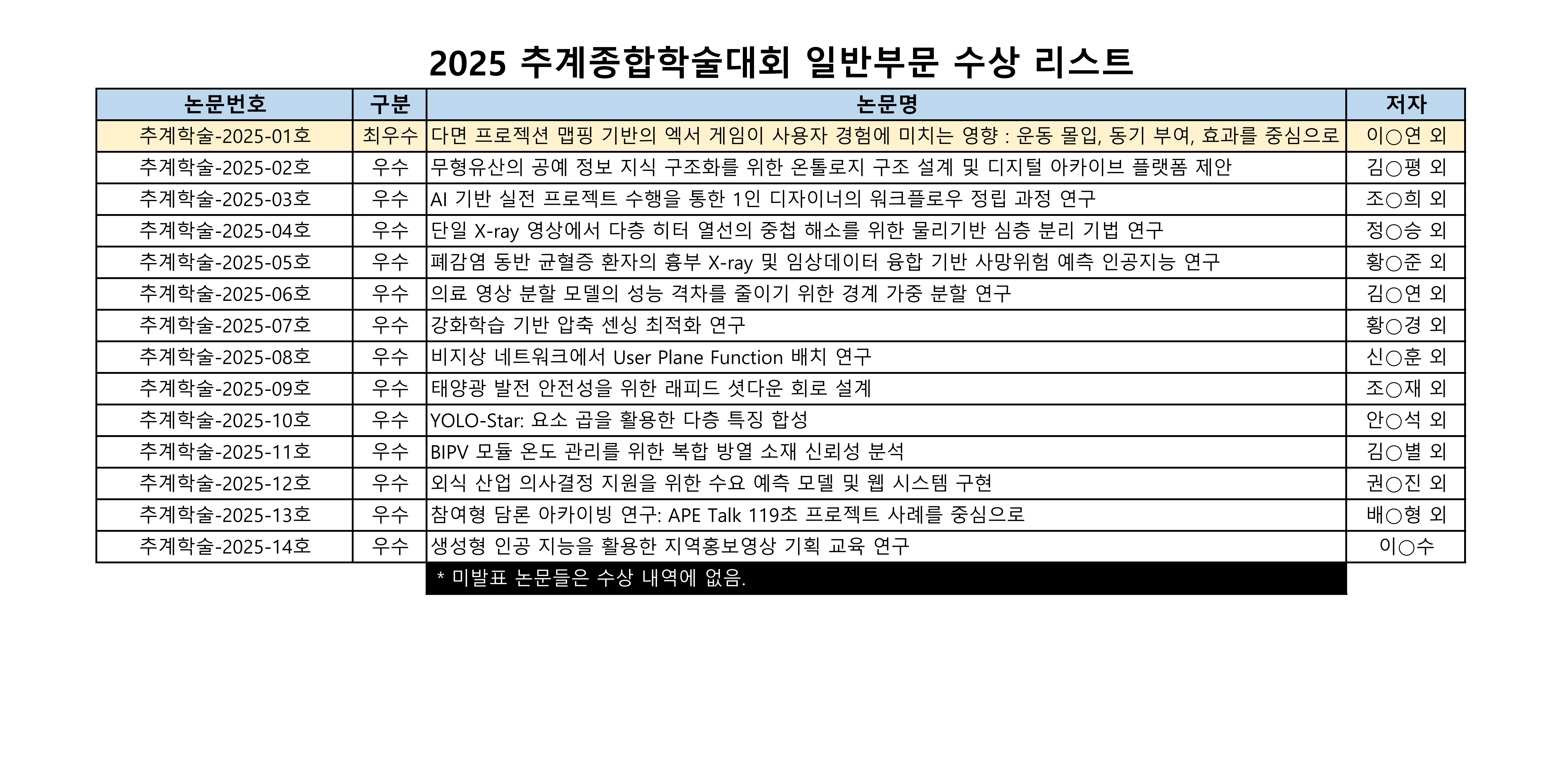 [2025년도 추계종합학술대회 및 대학생논문경진대회 수상 논문 발표]