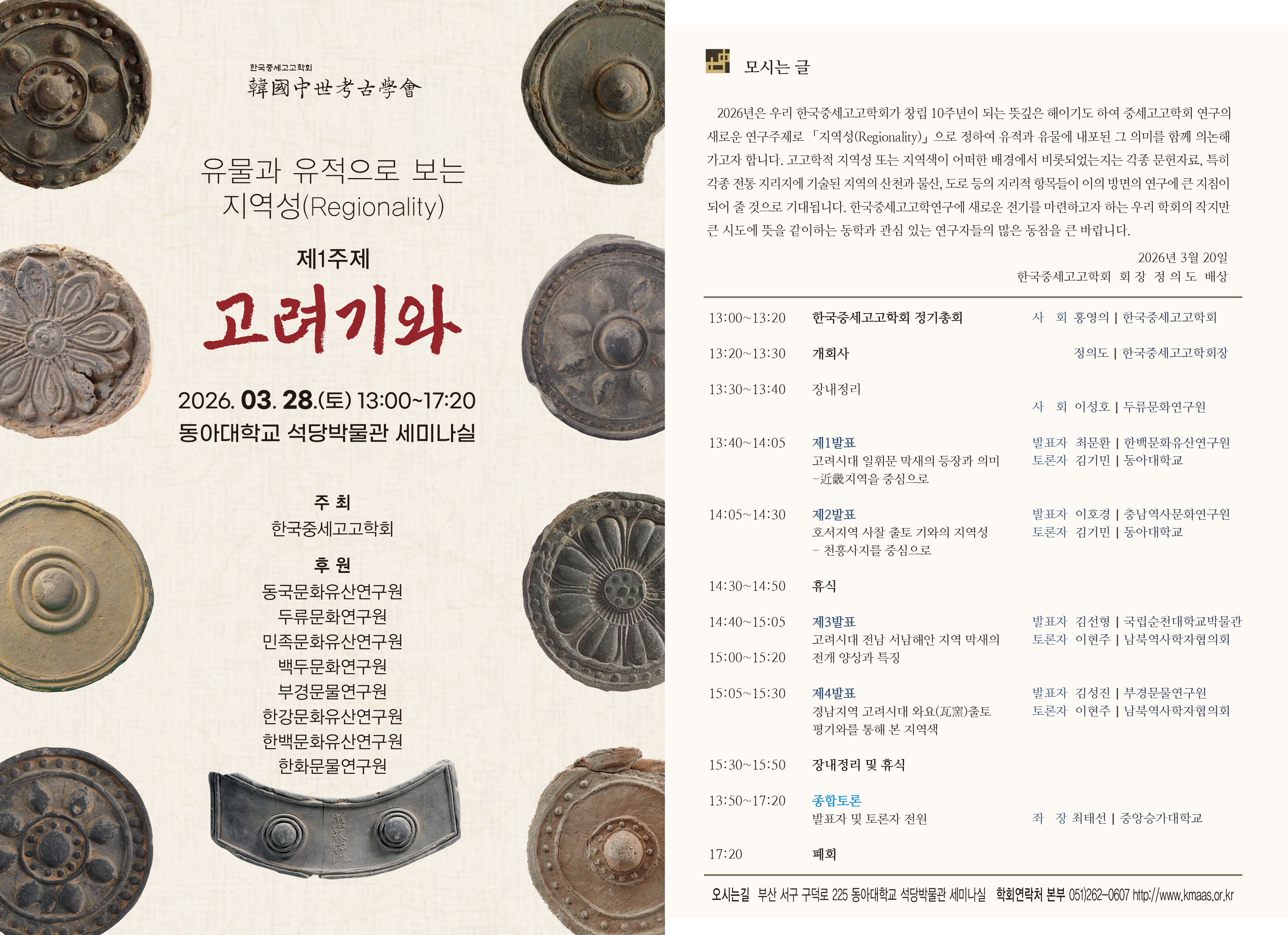 한국중세고고학회 2026년 춘계학술대회를 개최합니다.