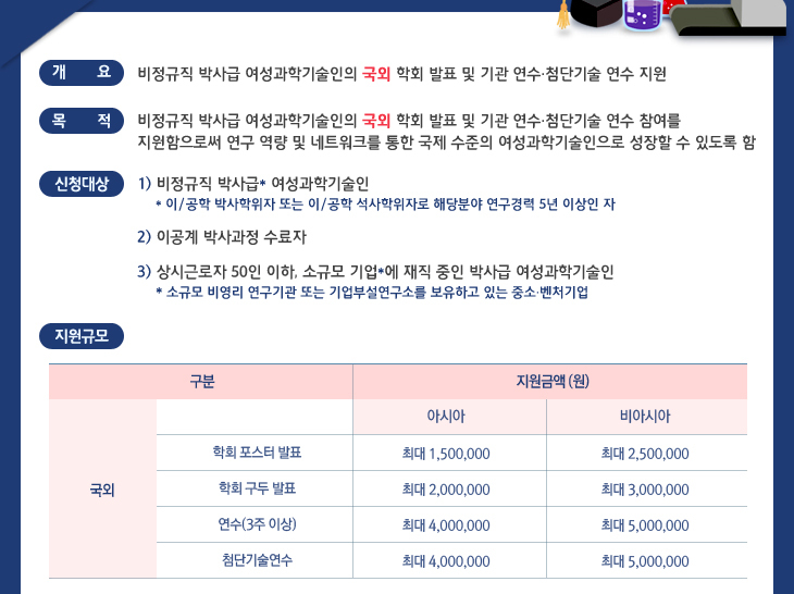 [WISET] 비정규직 박사급 여과기인 국외 학회 발표 및 기관 연수 최대 500만원 지원! (신청 6월 2일 ~