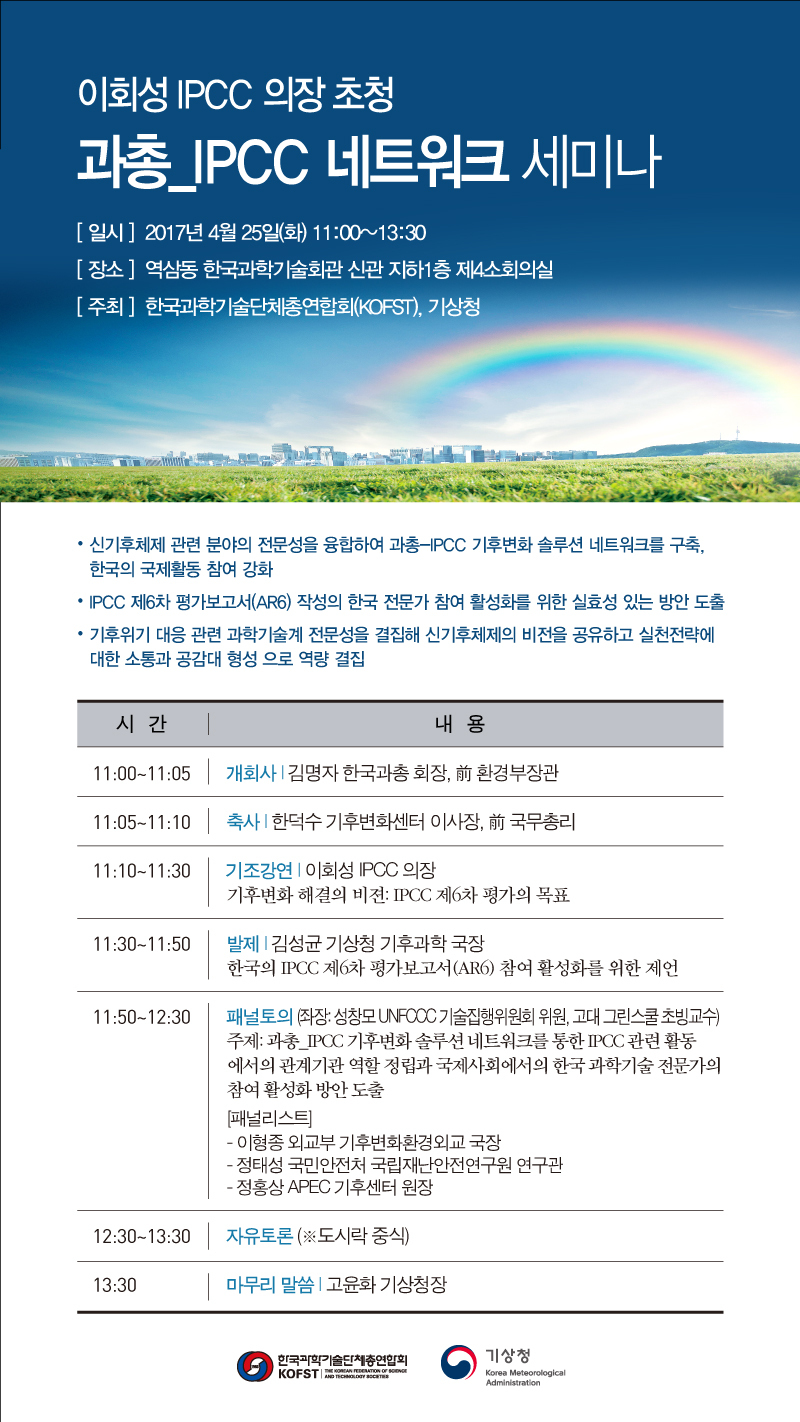 이회성 IPCC 의장 초청 과총_IPCC네트워크 세미나 개최 공지