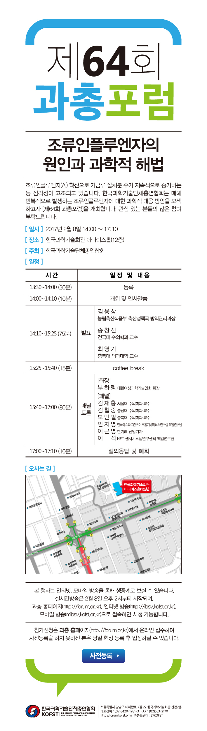 [제64회 과총포럼] 조류인플루엔자의 원인과 과학적 해법 공지사항 바로보기