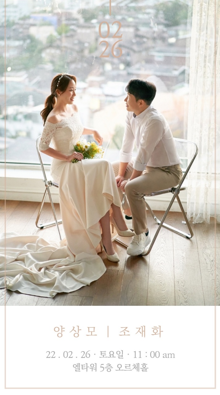 송은지 부회장님(남서울대 교수님) 자혼소식을 아래와 같이 알려드리니 많은 축하 부탁드립니다.