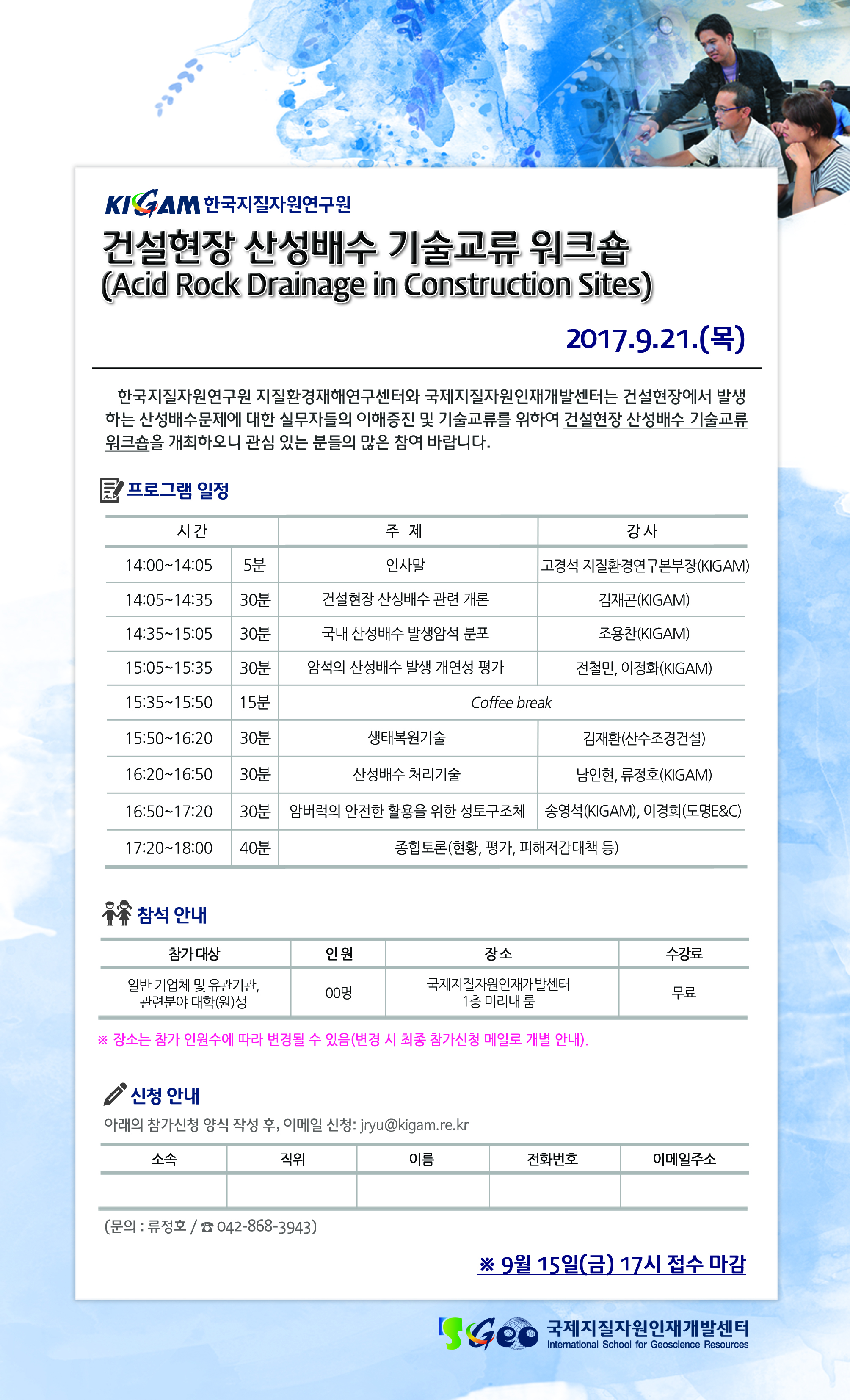 [한국지질자원연구원] 건설현장 산성배수 기술교류 워크숍 개최안내(9/21)