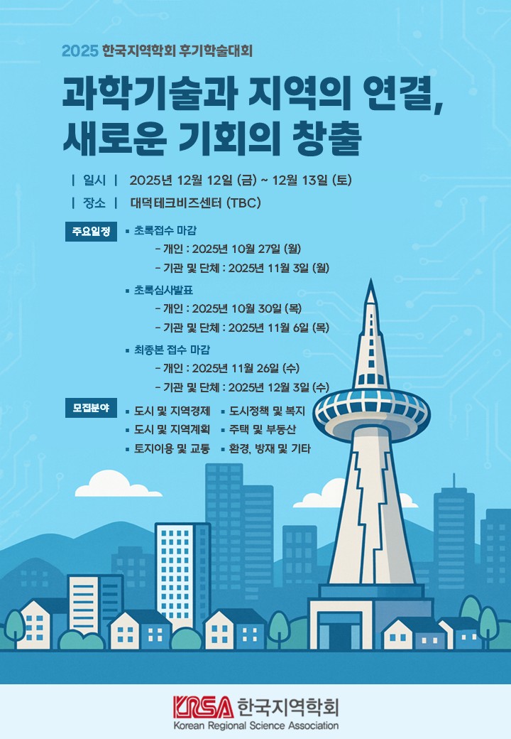2025년 한국지역학회 후기 학술대회 논문모집 안내