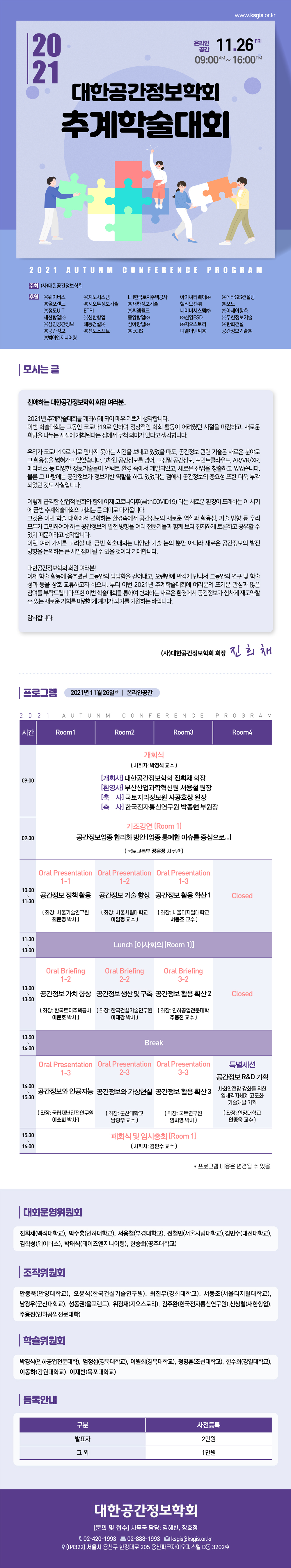 이번 온라인 'ZOOM' 에서 진행되는 '2021 대한공간정보학회 추계학술대회'는