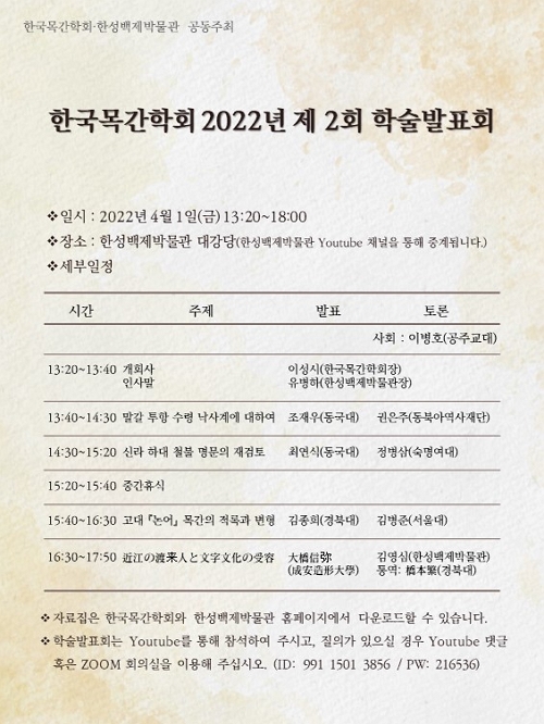 한국목간학회가 한성백제박물관과 함께 2022년 두 번째 학술발표회를 개최합니다.