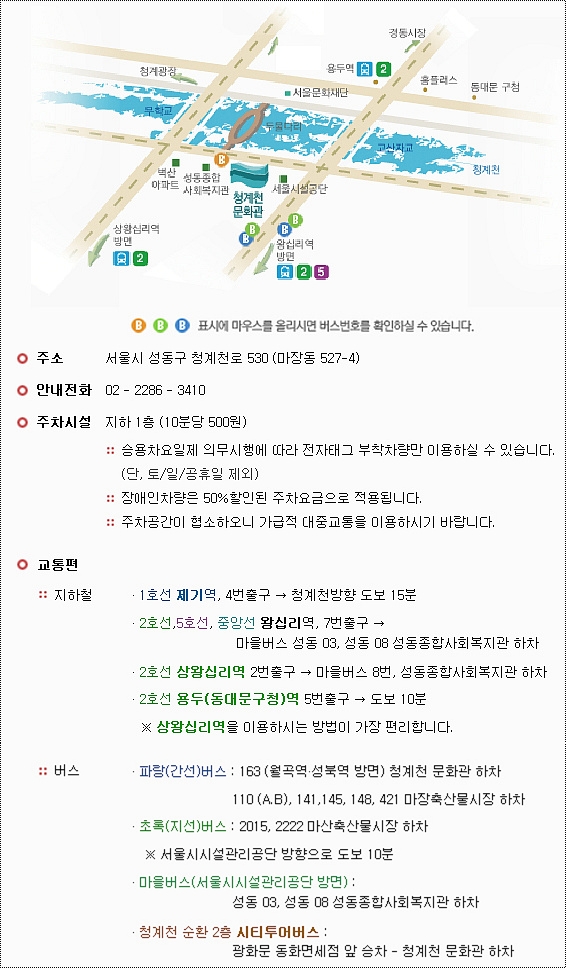 장소 : 서울 청계천문화관 (첨부 파일 참조)