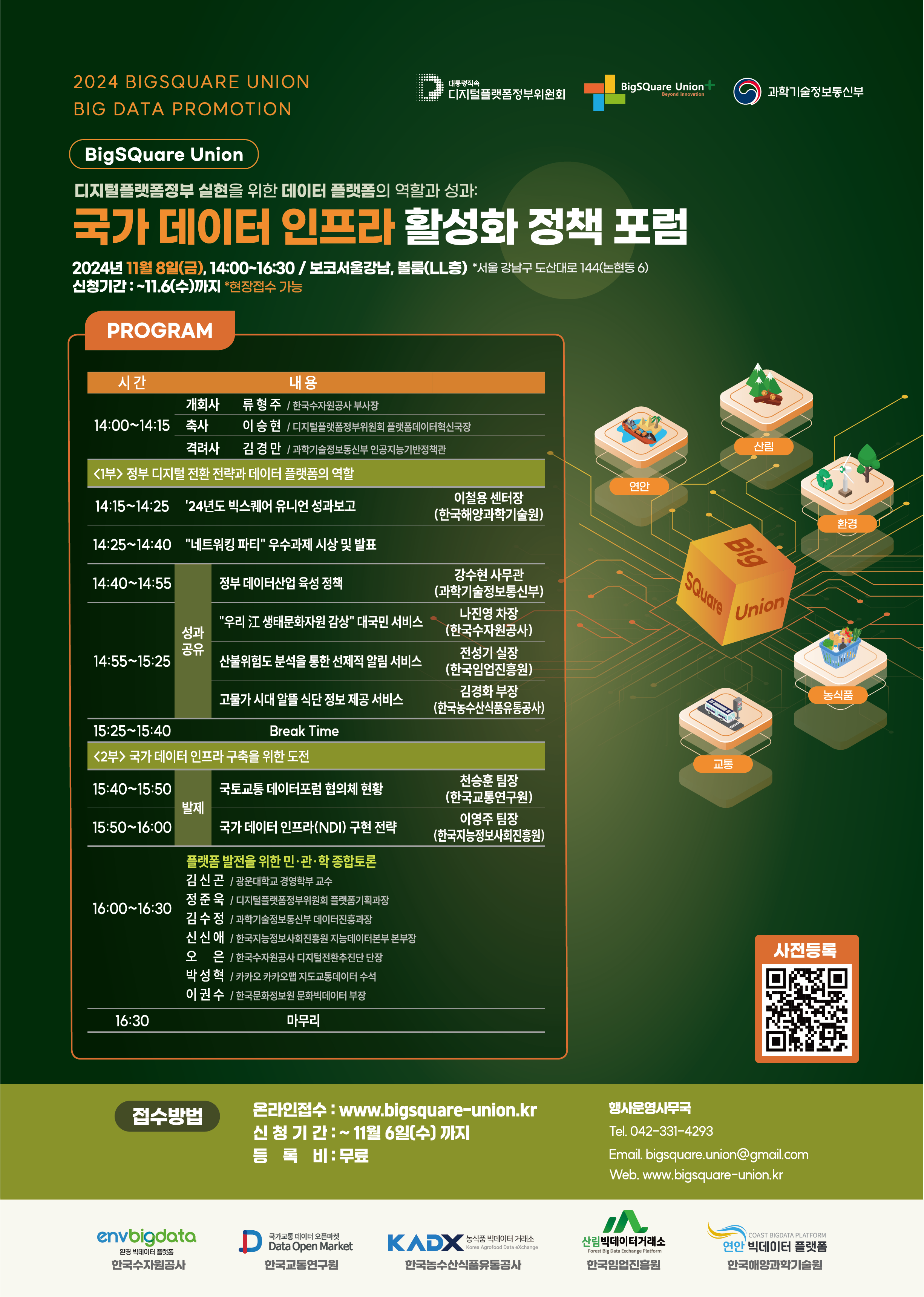 - 행 사 명 : 빅스퀘어 유니언 국가 데이터 인프라 활성화 정책 포럼