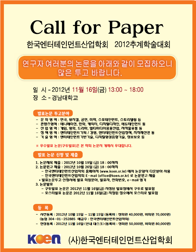 2012 추계학술대회 call for paper