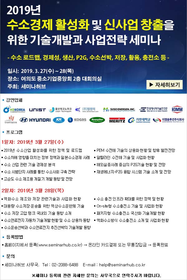 [세미나허브] 수소경제 활성화 및 신사업 창출을 위한 기술개발과 사업전략 세미나