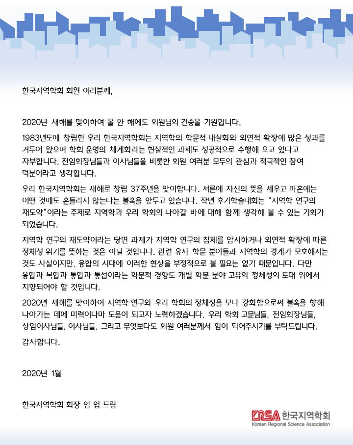 한국지역학회 2020년 새해 인사