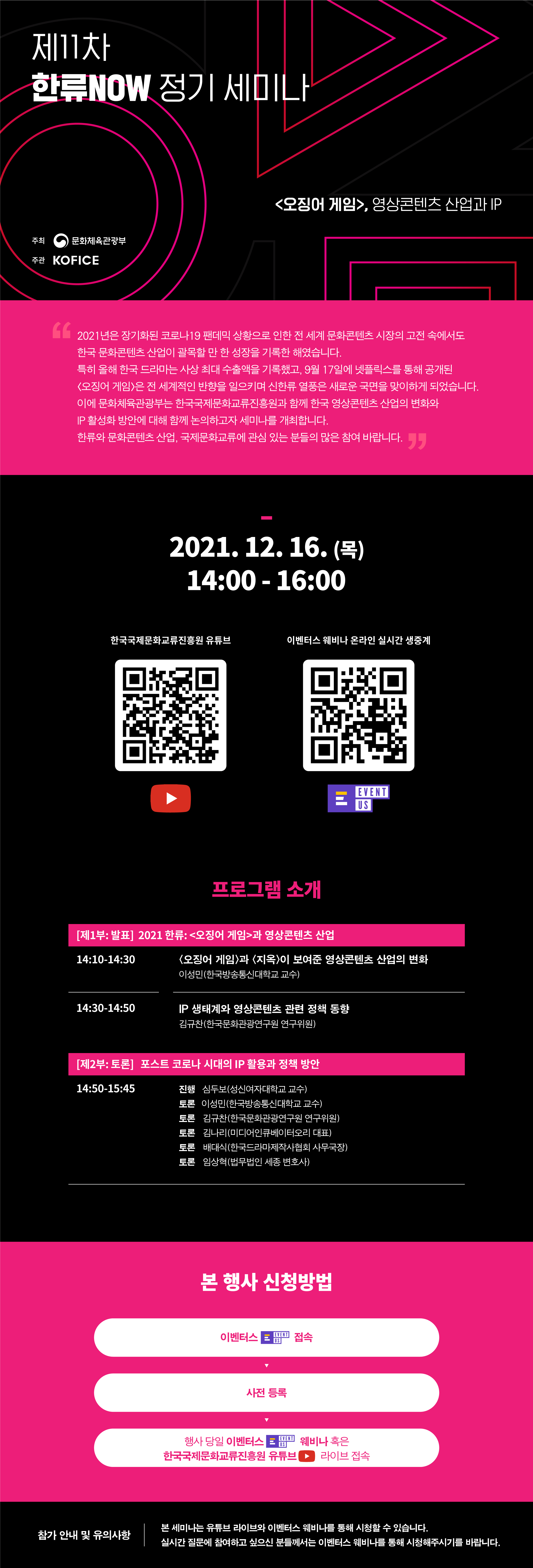 ▶장소 : 한국국제문화교류진흥원 유튜브채널(www.youtube.com/koficeculture), 이벤터스(사전등록자에한함)