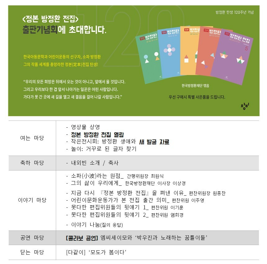 방정환 탄생 120주년 기념 『정본 방정환 전집』 출간기념회에 초대합니다.