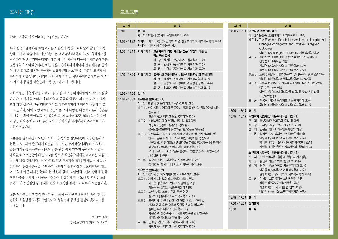 * 한국노년학회 2006 춘계학술대회 자세한 일정은 첨부파일을 확인하시기 바랍니다 *