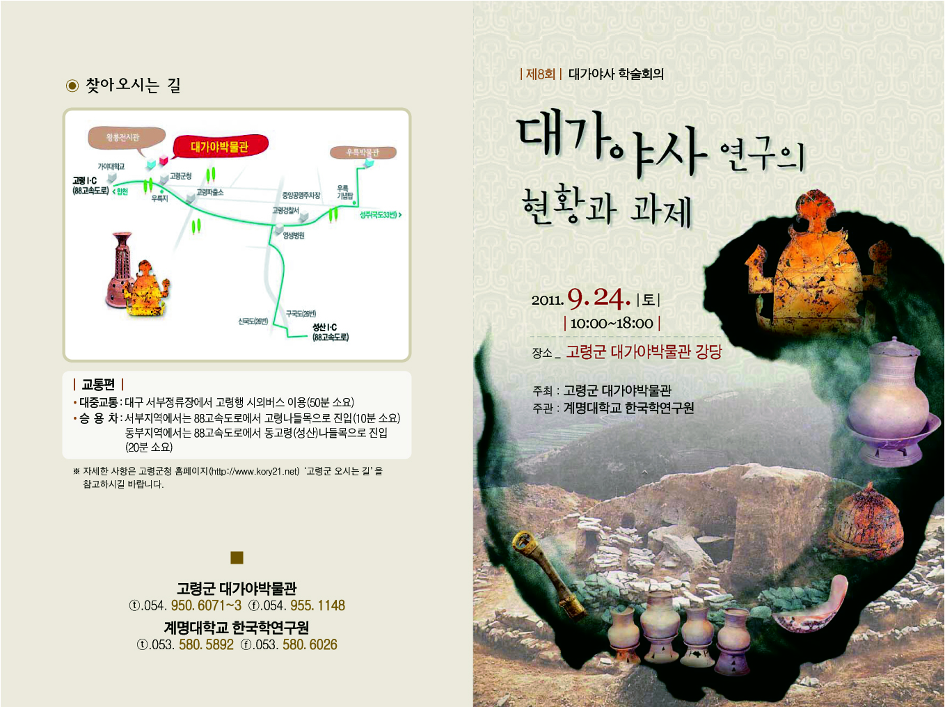 오는 9월 24일(土) 오전 10시부터 고령군 대가야박물관 주최, 계명대학교 한국학연구원 주관으로 제8회 대가야사 학술회의가 고령군 대가야박물관에서 열립니다.