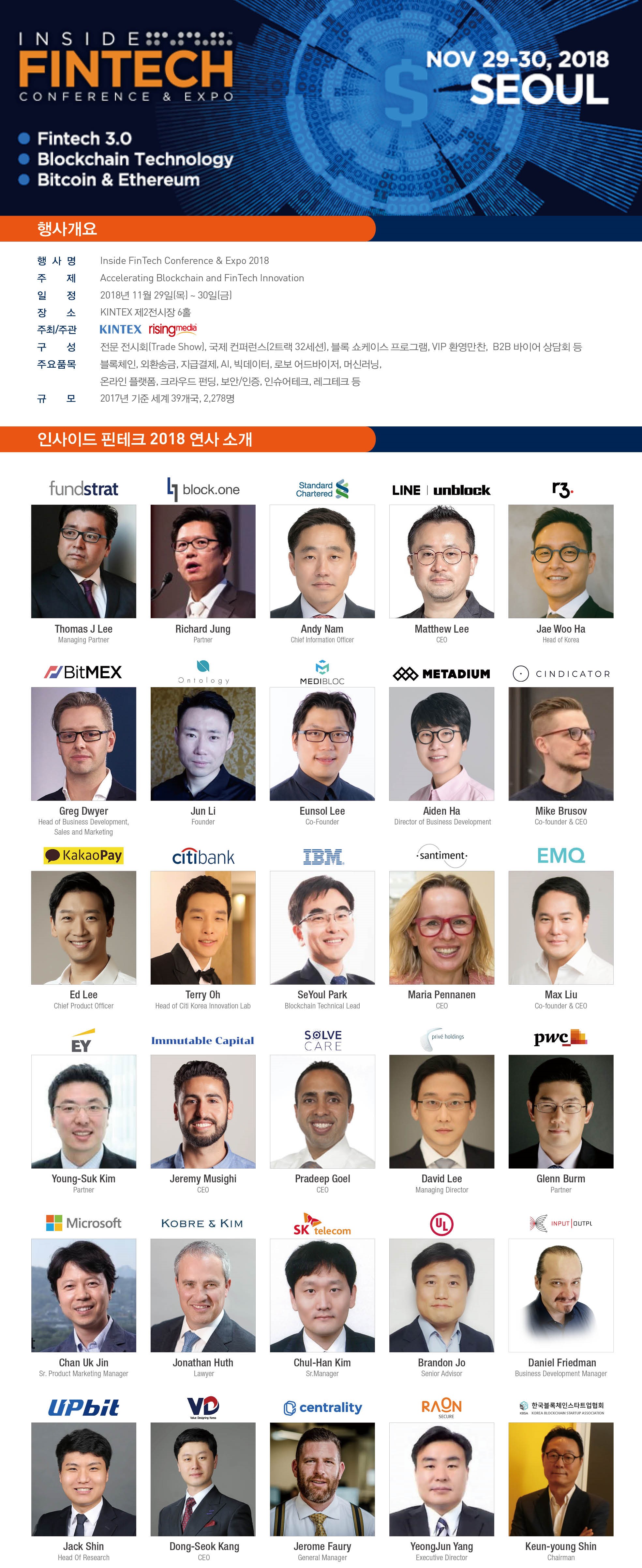 - 국제 핀테크/블록체인 컨퍼런스, 전시회 되도록 많은 분들이 참여하실 수 있도록