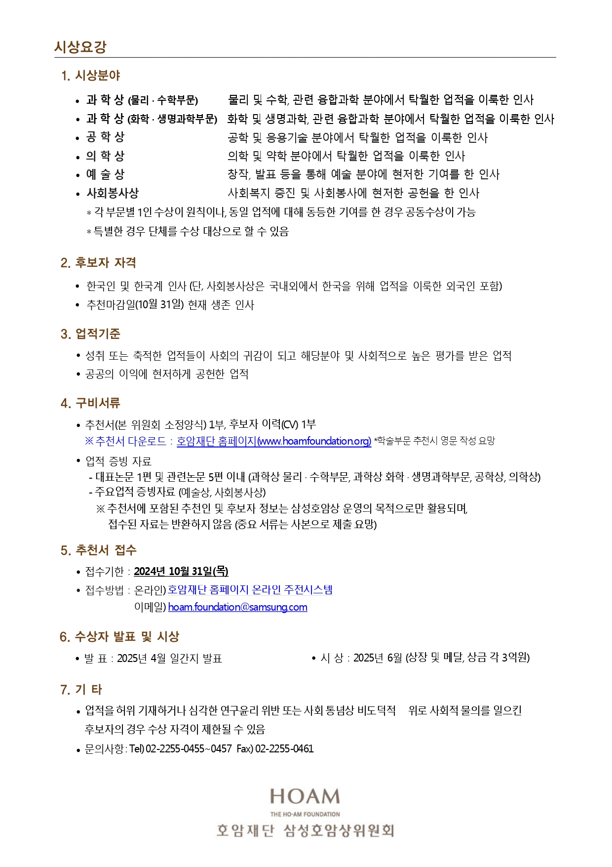 [호암재단] 2025 삼성호암상 후보자 추천안내(~10. 31(목))