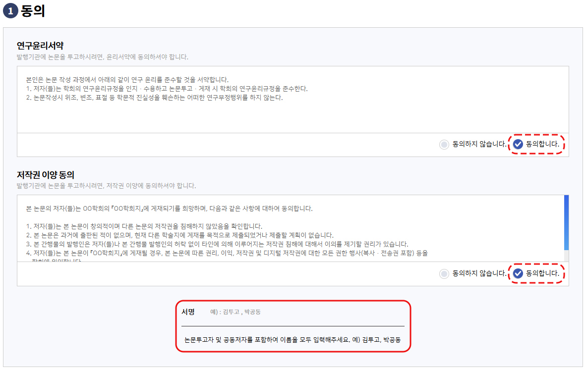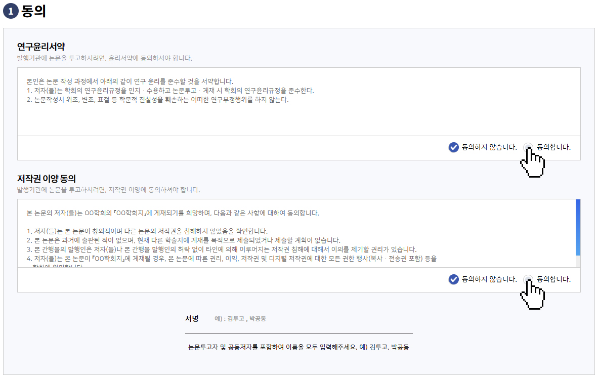 투고하기 1단계 - 동의