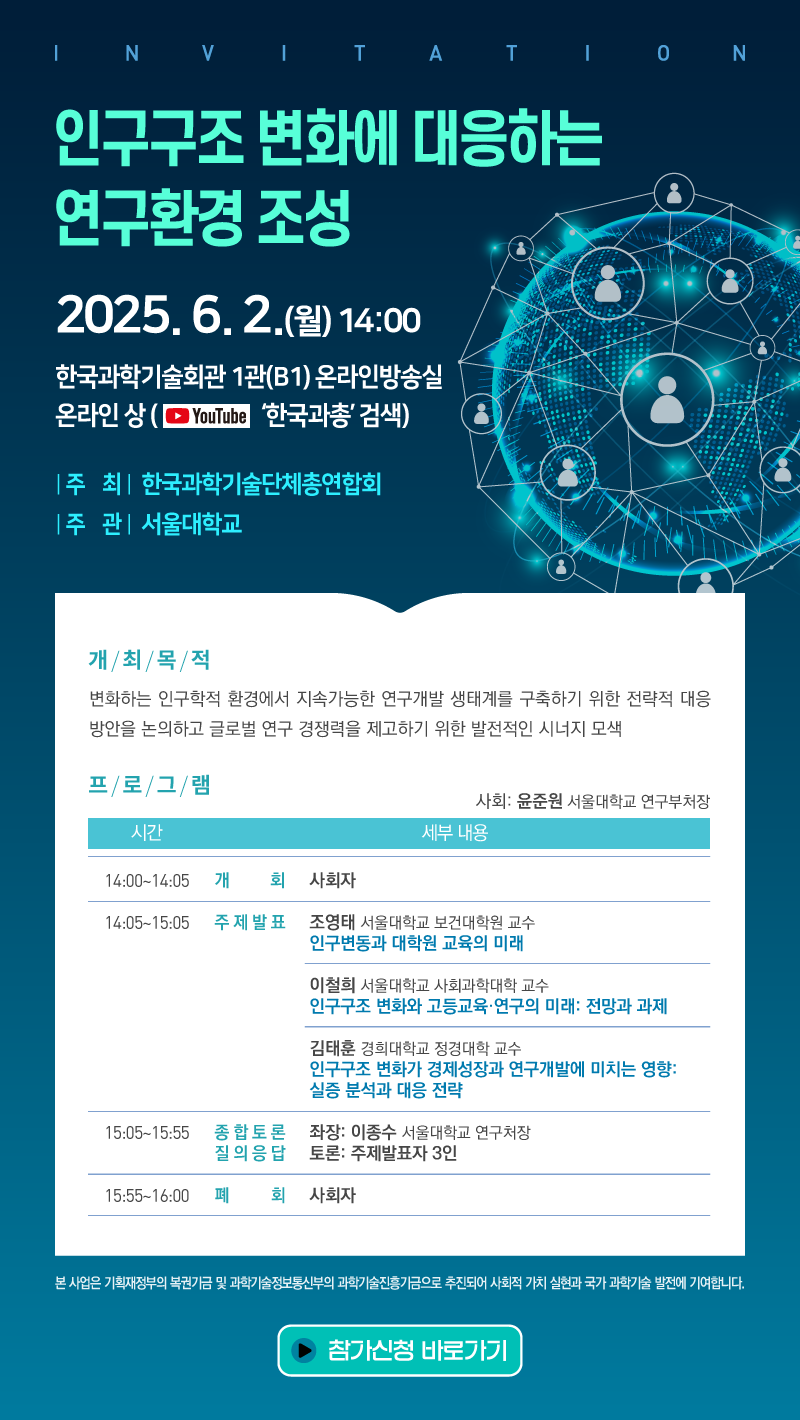 [과총-서울대 포럼] 인구구조 변화에 대응하는 연구환경 조성(6.2.월)