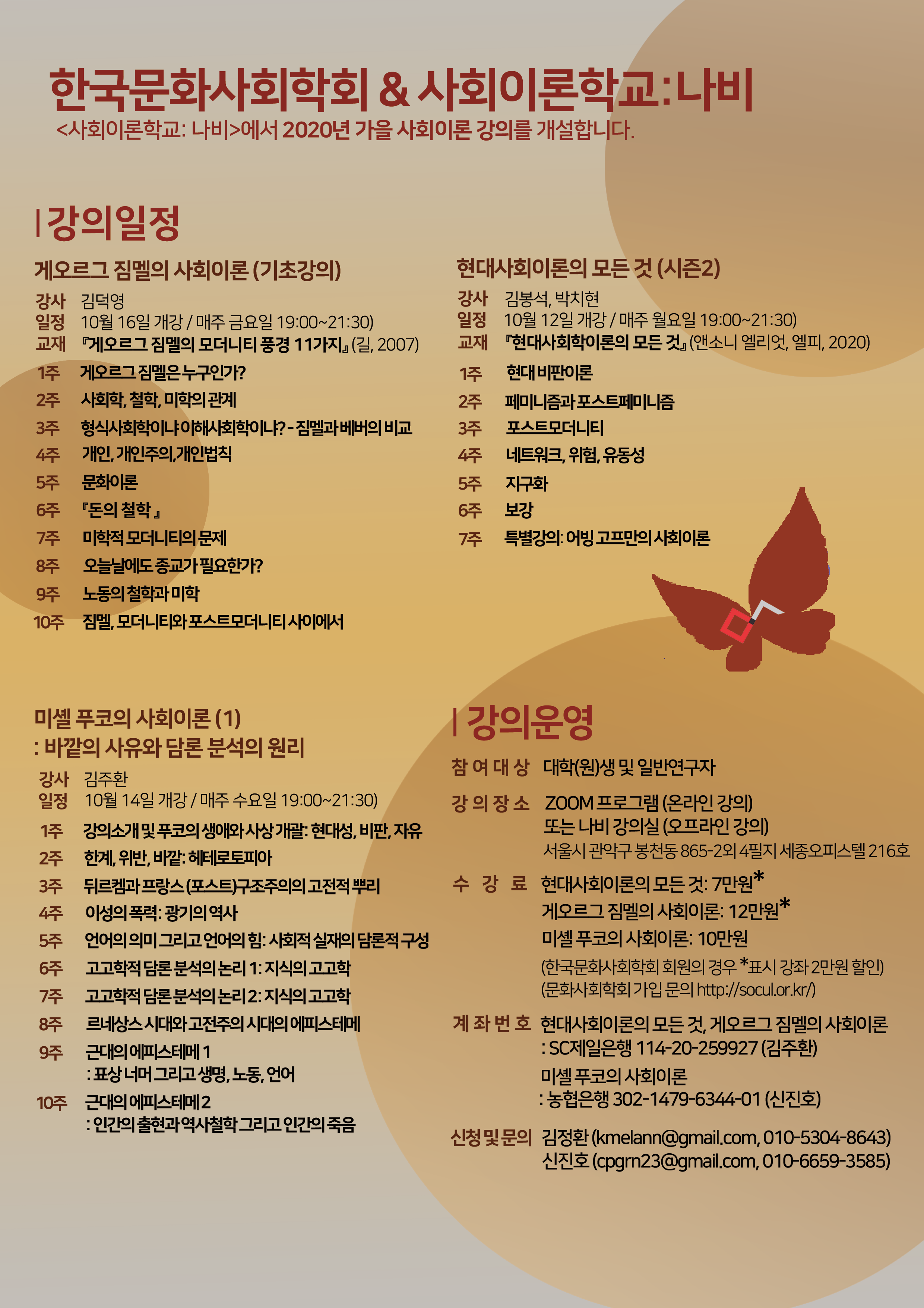 <한국문화사회학회> 및 <사회이론학교:나비> 공동기획 사회이론강좌