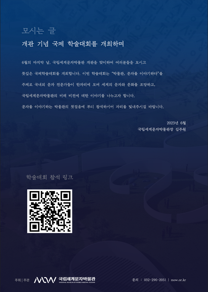 [국립세계문자박물관] 개관기념 국제학술대회 "박물관, 문자를 이야기하다" 개최(6/30)