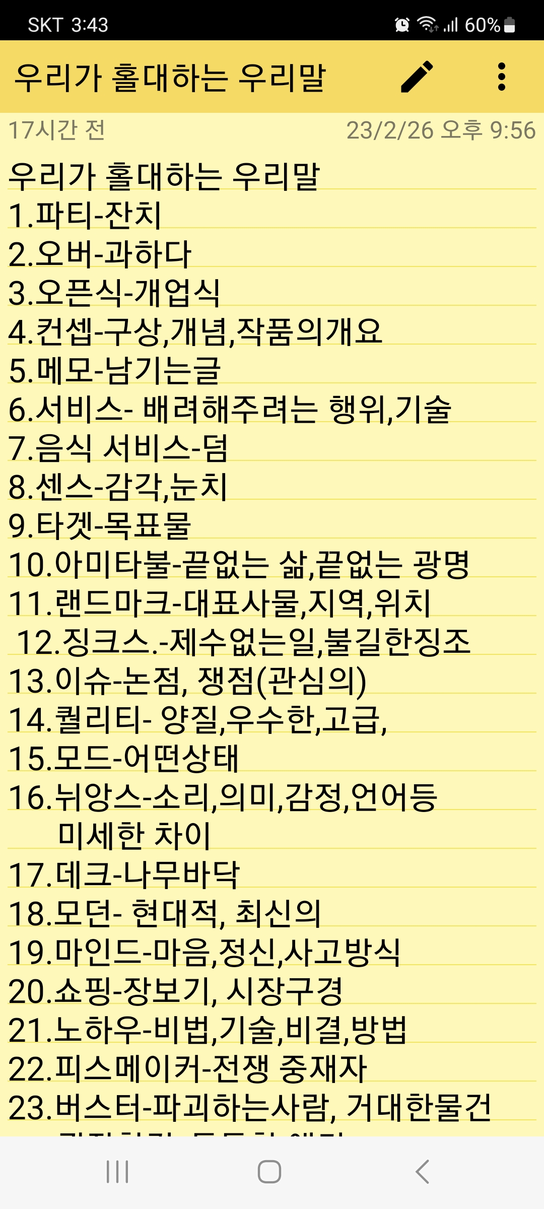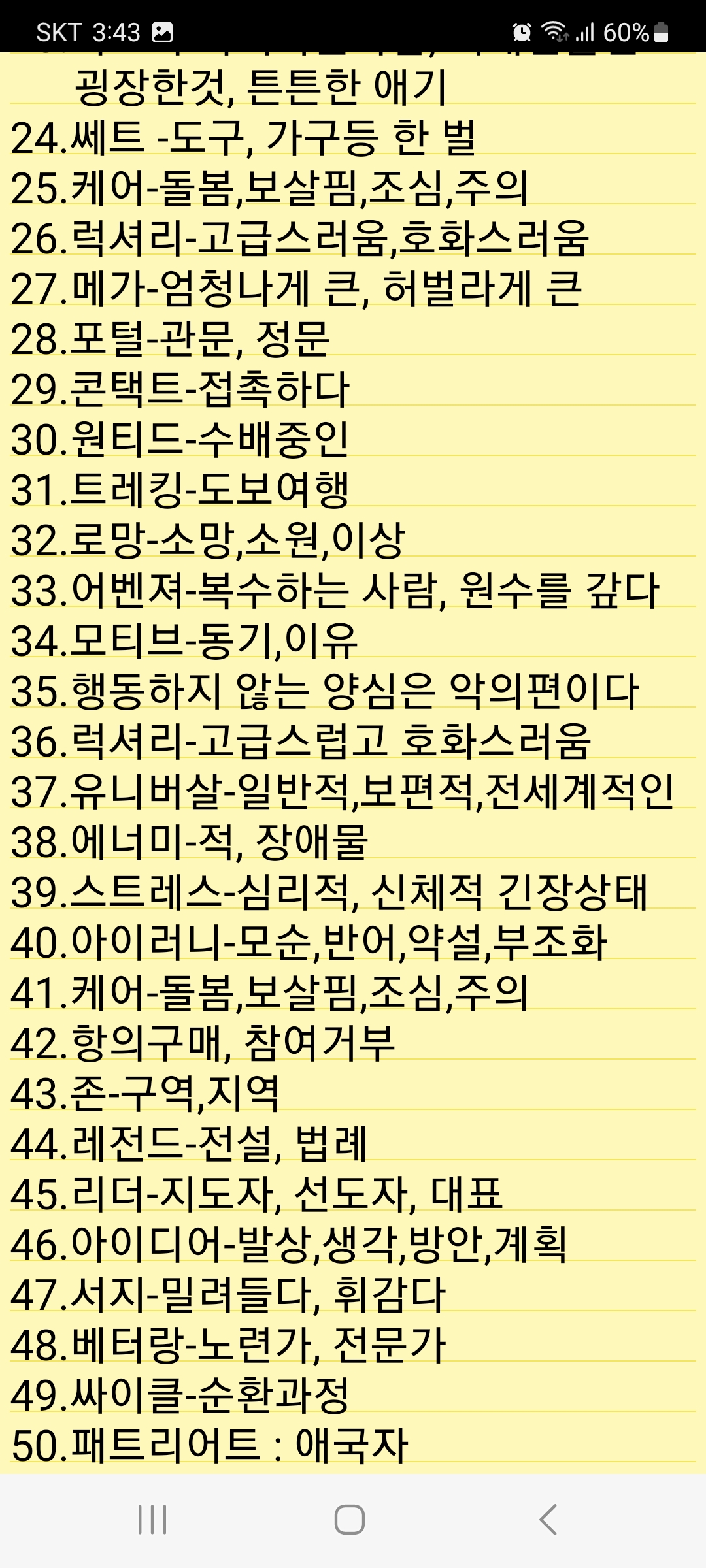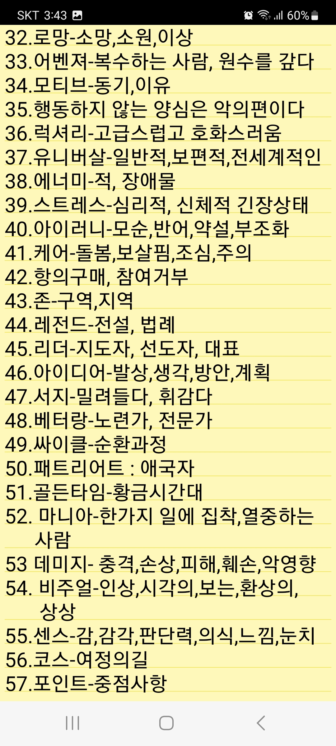제가 텔레비전 및 기타 방송을 듣다 한번씩 적은거 맞을지 모르지만 첨부합니다.