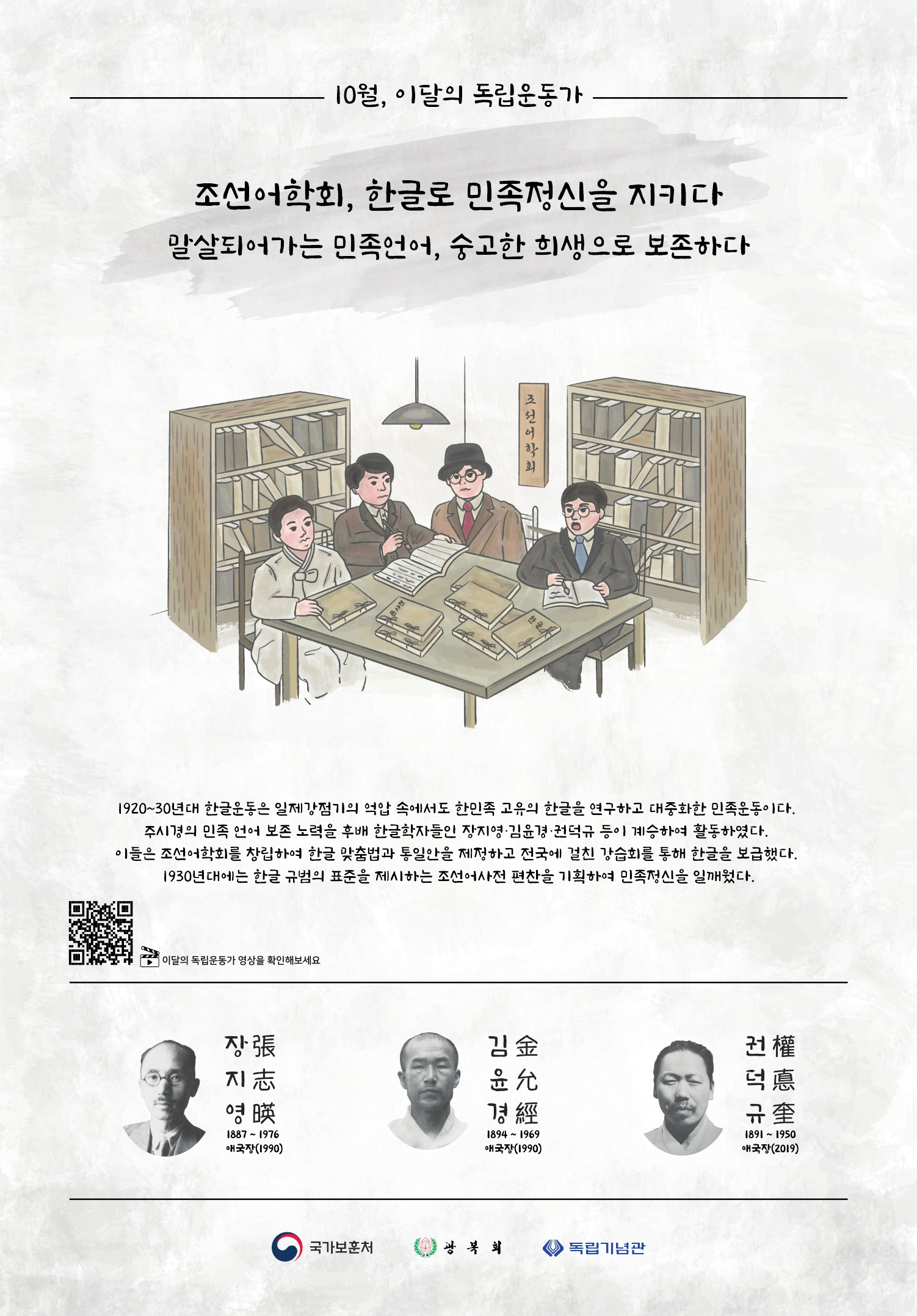 2021년 10월의 이달의 독립운동가로 조선어학회에서 활동하시고