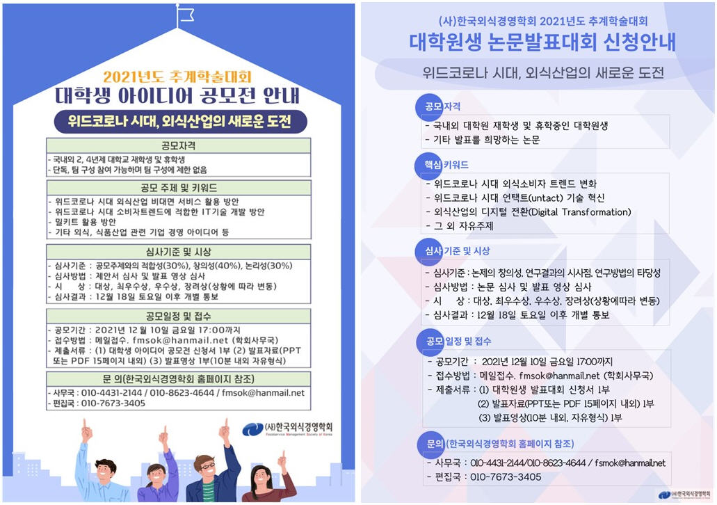 2021년도 추계학술대회 대학생 아이디어 공모전, 대학원생 논문 발표대회 신청 안내