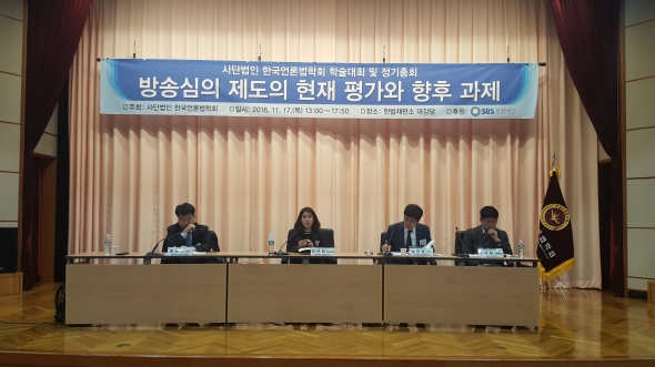 제1주제는 송종현 교수(선문대), 윤성옥 교수(경기대)가 "방송통신심의위원회 운영과 심의 활동 "을 주제로 발표를 하였고, 조소영 교수(부산대), 허진성 교수(대전대)가 토론을 맡아 주었습니다.